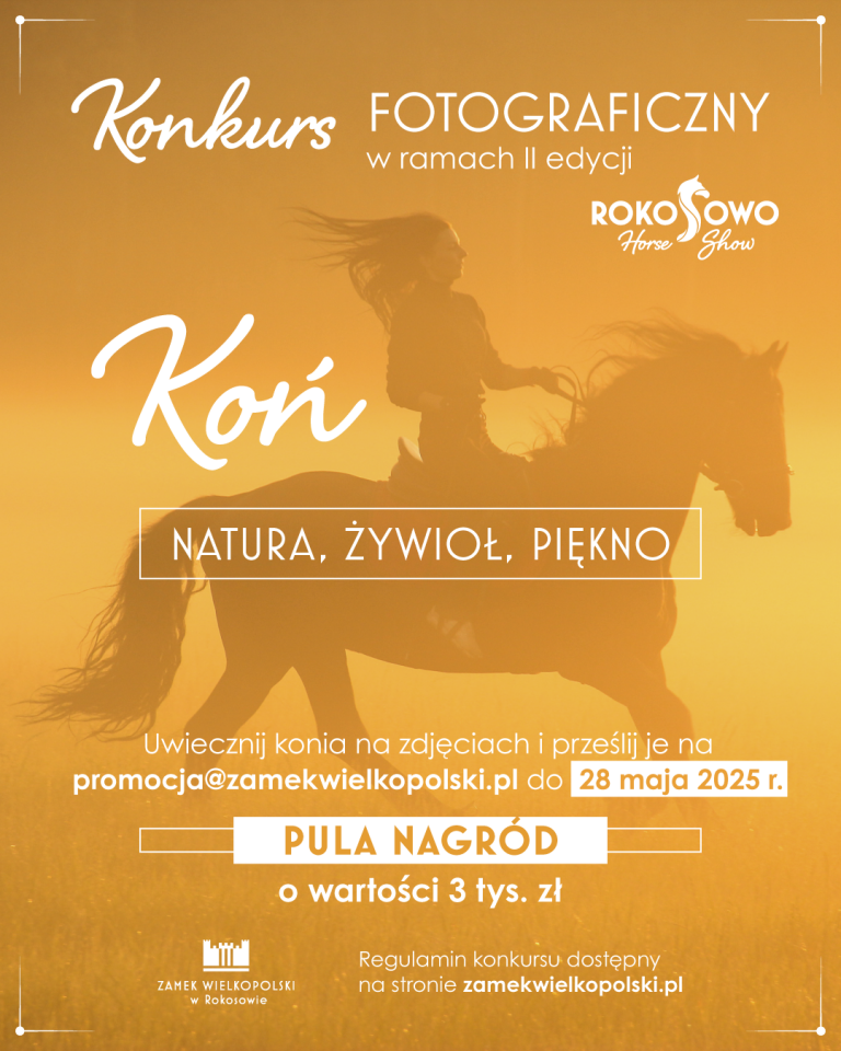 Najciekawsze zdjęcia zostaną wydrukowane i zaprezentowane podczas wydarzenia Rokosowo Horse Show, które odbędzie się w dniach 7-8 czerwca 2025 r.